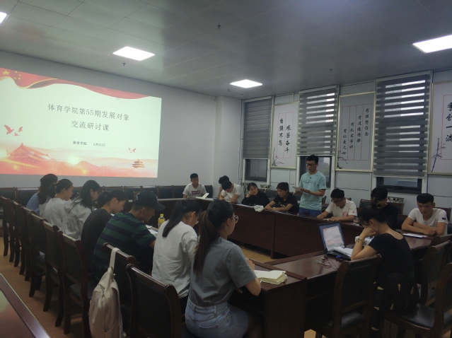 5月21日晚,体育学院党员工作站组织第55期发展对象在学院会议室开展了交流研讨活动。负责学院学生党建工作的专职辅导员曹杏利和兼职辅导员李文其参加了本次研讨活动,学院第55期发展对象参加研讨并围绕党课学习内容畅谈感受。