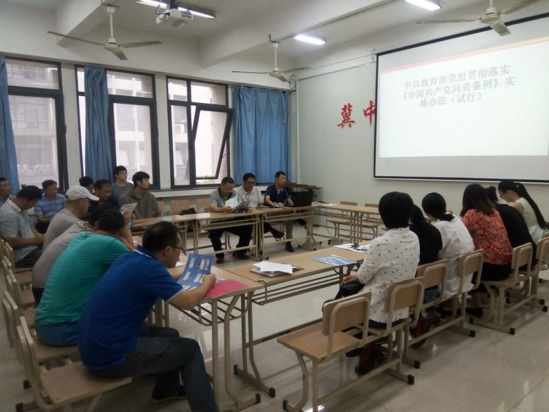 会后,张利先书记带领全院教职工党员共同学习了《中共教育部党组贯彻落实<中国共产党问责条例>实施办法(试行)》。这次学习一方面帮助学院党委及个人强化了思想认识,强调在工作中要互相配合、各负其责,在政治方向上自觉与上级党组织保持一致,要强化学院党委的主体责任;另一方面要求在实际工作中提高党员领导干部个人的担当意识、责任意识、大局意识,严于律己,克己奉公。