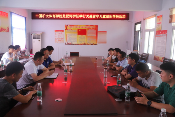 会议开始由张雷书记就当地相关情况做简要阐明,教体局相关人员表示当地留守儿童问题严重,解决留守儿童问题犹如逆水而行,希望中国矿业大学体育学院暑期社会实践团可以对症下药,往纵深发展,从内心深处走近留守儿童。孙院长发表致辞,简要汇报体育学院及实践团情况,针对留守儿童问题提出相应的解决办法。随后孙院长与淝河学区管委会副主任赵军签订了«中国矿业大学大学生社会实践基地协议书»,在淝河学区建立为期三年的社会实践基地,旨在互助共进,推进当地教育建设。之后,实践团队长张泽琦作为代表向淝河区管委会相关人员汇报有关留守儿童的体质测评和心理健康调查情况。最后,针对调查显示的留守儿童体质和心理健康问题,孙院长同当地相关领导在会上进行了讨论。