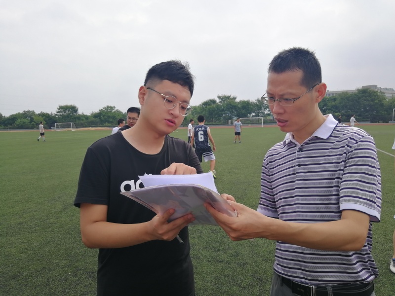体育学院教学副院长许彩明在第一运动场听课