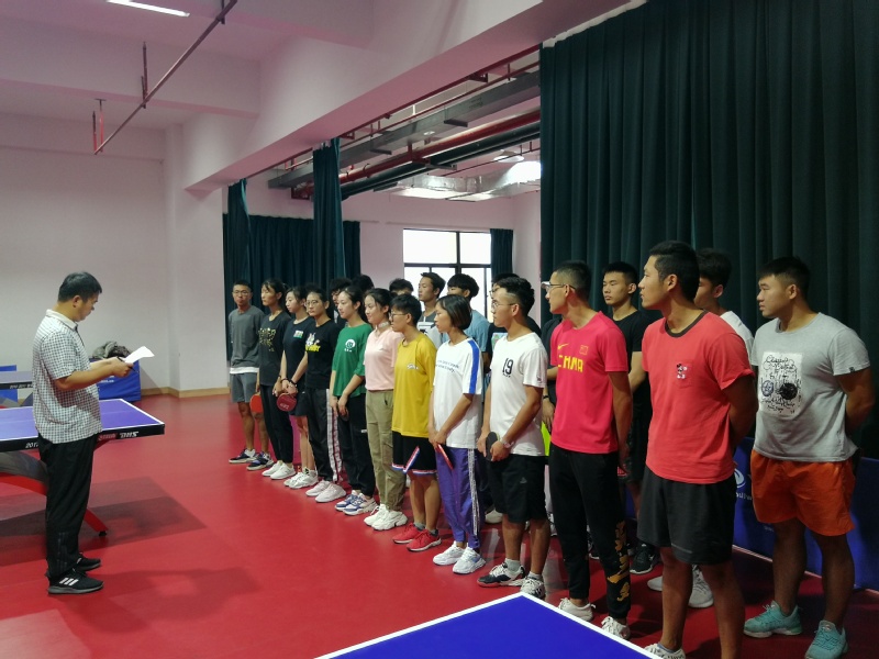 学院领导在乒乓球馆听课