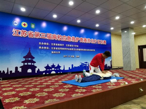 江苏省应急救护竞赛旨在以提升在校大学生应急救护能力,切实提高大学生自救互救技能为目的,本届比赛共有来自苏北赛区的24所高校参与角逐。