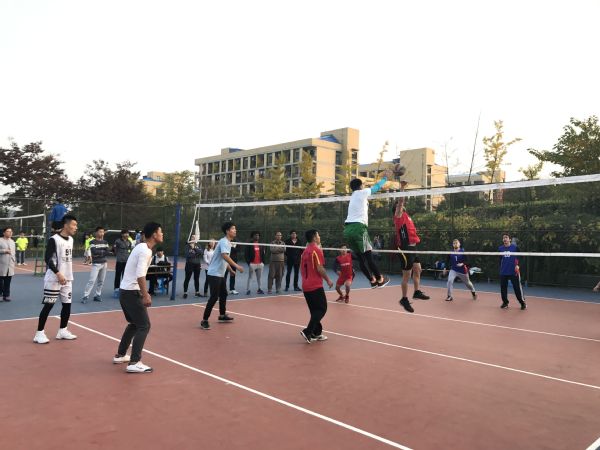 赛前,双方队员均在各自队长的组织带领下进行热身活动。随着裁判哨声的响起,第一局比赛正式开始。双方球员一上来就表现得十分积极主动,在赛场上势均力敌,难分伯仲,但由于国际学院的发球失误导致体育学院拿下局点,并最终以25:23的比分取得第一局的胜利。随后的比赛中,国际学院绝地反击、不甘示弱,频频打出漂亮的防守反击战术,接连赢下之后的两局比赛。场上火药味十足,体育学院与国际学院的教练员都紧张地布置着战术安排。随着哨声再次的响起,第四局比赛开始。比赛一开始,体育学院球员刘成忠便连续三次扣球得手,并且每次都能精准的打击到对方的漏防区。在防守端,体育学院球员方攀多次接起对面的掉球。攻守兼顾,体育学院最终以25:20的比分拿下第四局比赛。在决胜局中,体育学院球员杨凯达凭借着自己出色的弹跳力多次拦截国际学院的扣杀,表现突出,并且与其他球员积极配合最终以16:14拿下决胜局,成功晋级决赛。
