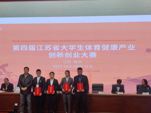 12月6日至8日,由江苏省大学生体育健康产业创新创业联盟主办、徐州工程学院承办的第四届江苏省大学生体育健康产业创新创业大赛在徐州工程学院举行。体育学院学生团队的“疗动--基于数据科学与体医融合的煤矿工人职业病防治及运动康复计划”项目获得一等奖。