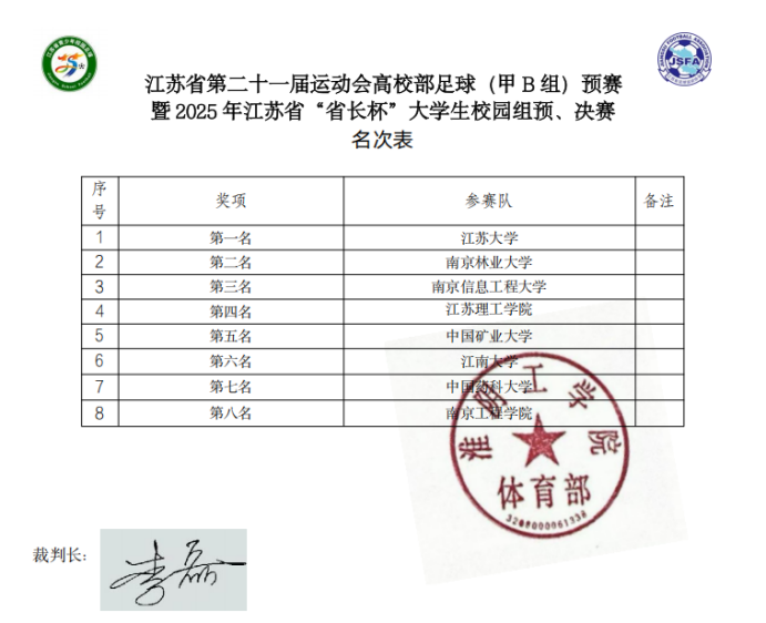 11月1日至9日,江苏省第二十一届运动会高校足球(甲B组)预赛暨2025年江苏省“省长杯”大学生校园组预、决赛小组赛在淮阴工学院举行,来自全省的21支本科院校代表队参赛。中国矿业大学校足球队在强手如林的小组中突围,以小组第一身份晋级八强,成功闯入省运会正赛,展现了矿大学子的竞技实力与团队韧性。