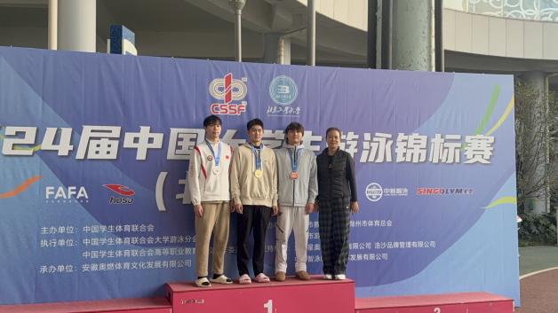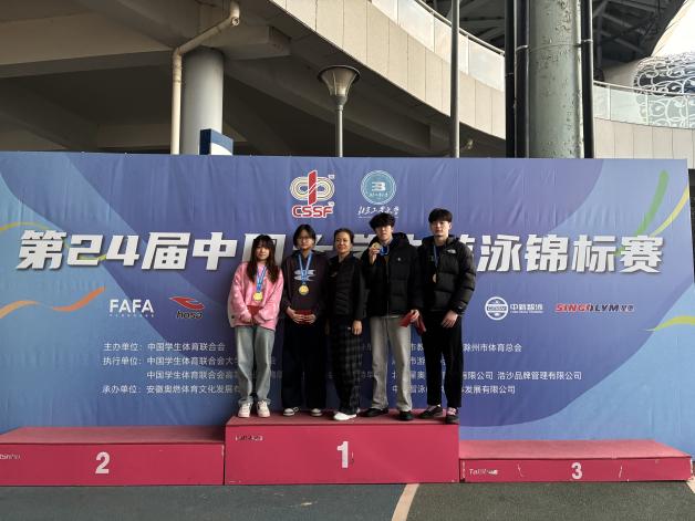 经过四天激烈角逐,我校游泳队顽强拼搏、奋勇争先,最终斩获3金、5银、7铜共计15枚奖牌,并取得了北方赛区丙A组团体第2名、丙A组女子团体第2名、丙A组男子团体第4名的优异成绩。