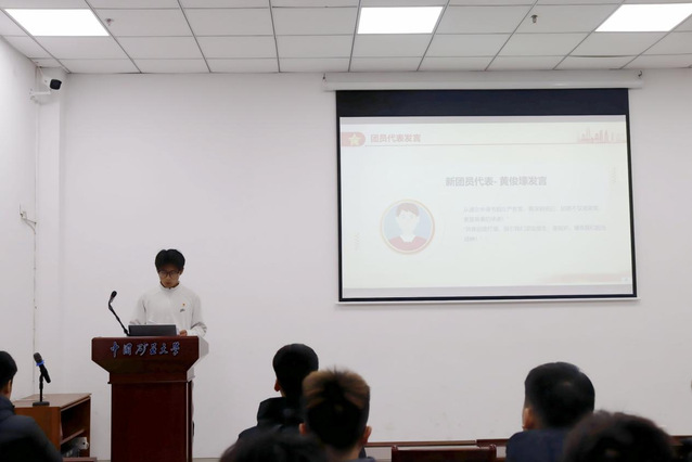 团员代表张林在发言中号召大家“学为先锋、行有温度、心向旗帜”,从身边小事做起,以实际行动诠释团员的责任与担当。新团员代表黄俊壕表示,团徽不仅是荣耀,更是青春的承诺,他将以共青团员的标准严格要求自己,在集体中成长,在奉献中闪光。