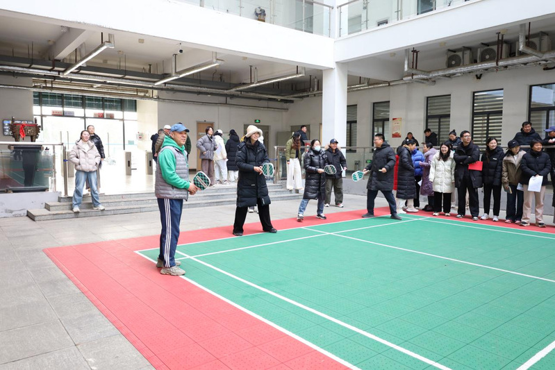 联欢活动共设置“贪吃蛇”和“扔沙包”两个活动环节。“贪吃蛇”游戏中,大家手拉手组成“蛇身”,在指定区域内灵活穿梭、默契配合,团结协助以最快的速度完成比赛任务,现场不时响起阵阵欢呼与笑声。“扔沙包”项目则唤起了大家的童年记忆,老师们以小组为单位,精准投掷,力争为团队争得更高的分数,阵阵喝彩,加油声、呐喊声此起彼伏,将活动氛围推向高潮。除游戏环节外,活动还设置了匹克球项目体验环节。