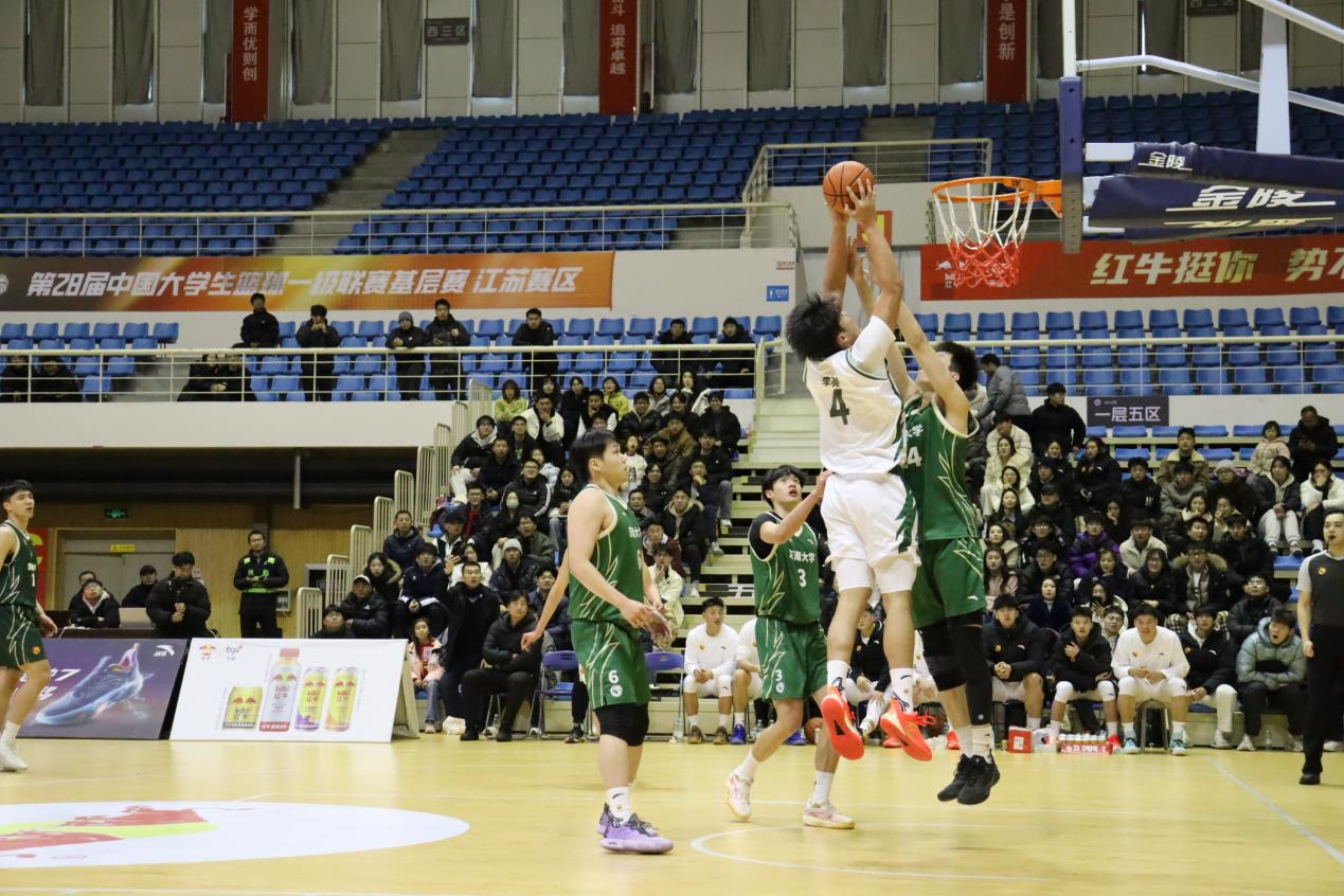 1月10日下午,第28届CUBAL中国大学生篮球一级联赛基层赛江苏赛区冠亚军争夺赛首场比赛在我校南湖校区体育馆打响。我校男篮主场作战,以87:75战胜东南大学男篮,赢得赛区冠亚军争夺战的首场胜利。
