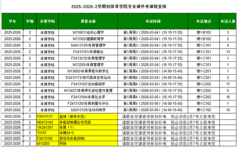 2025-2026-2学期初体育学院专业课补考课程安排.xlsx