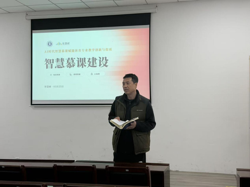 本次集体备课以“AI时代智慧慕课赋能体育教学创新与提质”为主题,邀请“智慧树”在线教育平台相关负责人担任主讲。集体备课过程中,主讲人结合学生体质提升需求,围绕智慧慕课在体育教学中的实践应用展开详细分享。与会教师结合学校体育教学实践,围绕如何通过慕课资源优化教学内容、设计贴合学生体质发展的教学方案展开研讨。
