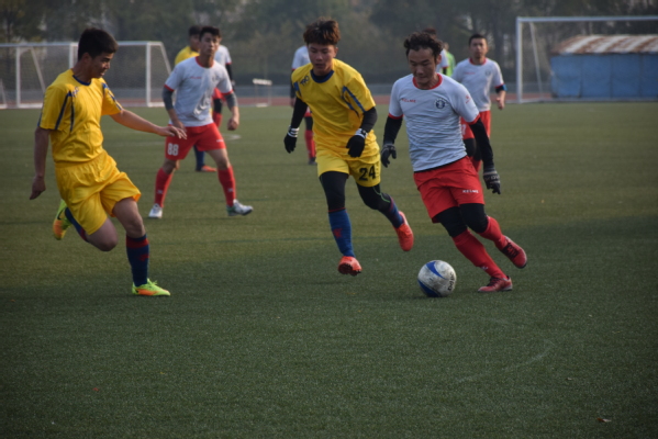 随着主裁判一声哨响,比赛正式开始。我方11号球员艾尼·艾力与17号球员太力艾提·吐尔江一上来便紧密连线,接连上演二过一的配合,逐渐将球权控制在我方队员脚下,并不断对对方球门产生不同程度的威胁。22号内比江·买提库尔班也通过漂亮的斜切过人,形成单刀机会,但是由于出脚力度不足,被对方守门员拦下。僵局在开局后8分钟被打破,再一次进攻中,对方后卫禁区内手球为我校赢得点球机会,27号张圳琪操刀主罚命中,场上比分变为1:0。这一进球极大地鼓舞了我校队员士气,各队员也逐渐进入比赛节奏。在比赛进行到17分钟时,我校中锋8号加那提·卡肯与29号冉义川巧妙配合,将球传到了10号哈那提·达聿汗脚下,后者转身抽射遭门将扑出,26号刘凯找准球落点,一个扑地扫射成功破门,比分改写为2:0。上半场比赛我校代表队控球率远高于对手,并多次对对方球门发起有效进攻牢牢把握比赛节奏。