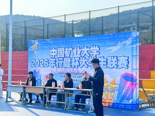 3月29日,中国矿业大学2026年“行健杯”篮球联赛开幕式在第二运动场举行。体育学院党委书记张利先、全体裁判员、各学院运动员代表及师生代表共同参加。