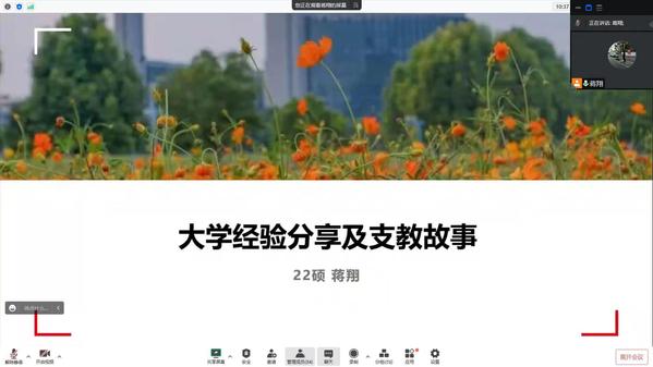 8月25日上午,体育学院举办2022级新生线上经验分享会。本次主题教育邀请蒋翔学长分享大学经验和支教故事,辅导员刘邦舜和2022级全体新生共同参加。