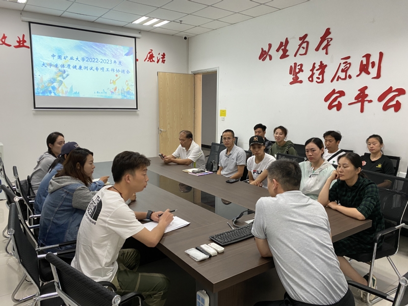 2022年9月16日上午,体育学院在体育馆B102会议室召开中国矿业大学2022-2023年度大学生体质健康测试专项工作协调会。学院科研副院长王军利、体育科学实验中心全体工作人员及参与此次体质测试工作的各位老师参加了本次会议,会议由实验中心副主任白剑飞主持。