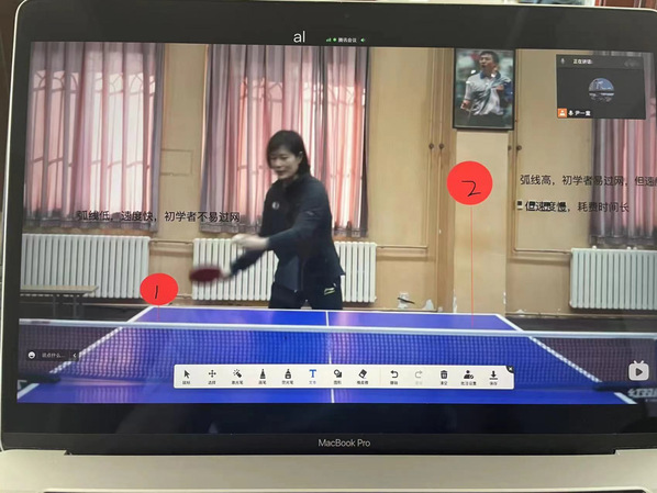 教师尹一童讲授了乒乓球击球时间和击球部位,将乒乓球比做一个表盘,以画图的形式清晰讲解击球位置。为同学们播放东京奥运会纪录片《出征》,以东京奥运会中国队的备战经历,激励全校大学生。