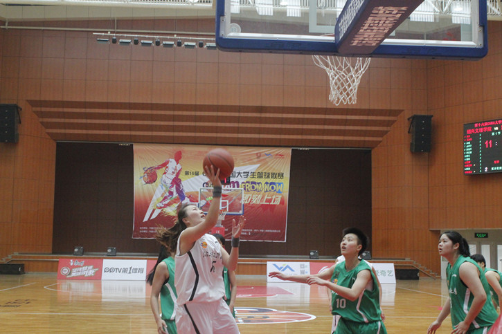4月27日下午,CUBA中国大学生篮球联赛女子排位赛绍兴文理学院与浙江理工大学的比赛在江苏省徐州医药高等学校体育馆内进行。经过40分钟的激战,绍兴文理以68:50战胜浙江理工。