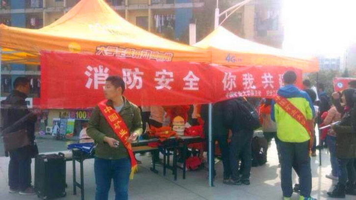 11月9日,为普及消防知识,提高学生安全意识,我院青协联合校保卫处、安全学院在二食堂广场举行消防日宣传活动。