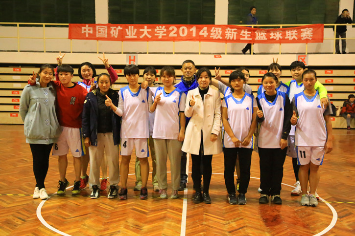 11月26日晚,校新生篮球赛决赛在中国矿业大学文昌校区篮球馆精彩上演,体育学院女篮发挥出色,以48:19战胜力建学院获得冠军。体育学院党委副书记郭鹏、辅导员曹杏利与部分同学一起来到现场,为女篮队员们加油助威。