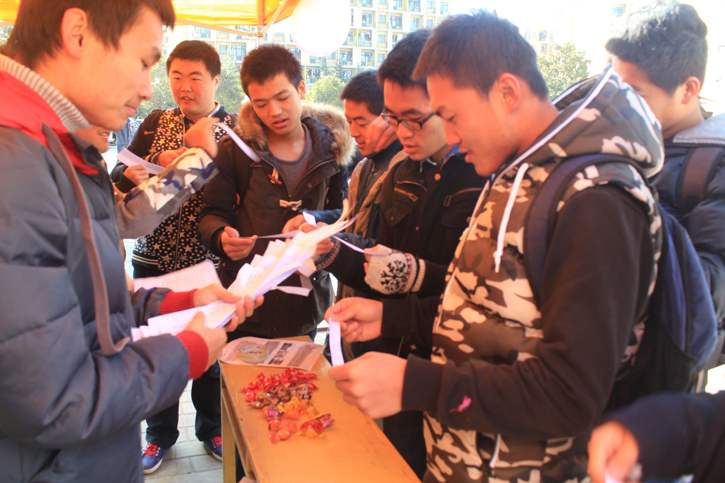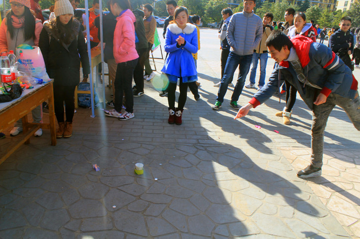 体育学院心理自助中心为这次活动做了精心的策划和准备,虽然天气寒冷,但成员们不畏严寒,鼓励大家参与到活动中去,了解更多关于艾滋病的知识。成员们精心准备了“喝水传话”、“丢硬币”、“知识问答”、“戳气球”等互动性十足的小游戏,“喝水传话”要求每队排成一列,并发一个装满水的杯子,主持人告诉第一个人题目,第一个人含住水同时向后面传题目,依此类推。这样充满趣味的小游戏既活跃了现场氛围又让大家了解到了许多关于艾滋病的知识。参与现场活动的同学们也纷纷表示这样的活动不仅帮助了他们正确了解艾滋病,而且也为他们预防艾滋病,关爱艾滋病人搭建了平台。