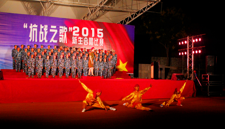 今年逢抗日战争胜利七十周年,为引导新生铭记历史,感受祖国国防的日益强盛,我院先后组织了各式各样的爱国主义活动。为积极响应学校号召,以合唱比赛的形式表达青年学子的爱国情怀,我院学子克服军训队列和内务整理的辛苦,加紧练习,合唱比赛现场的效果也肯定了他们为之付出的努力。
