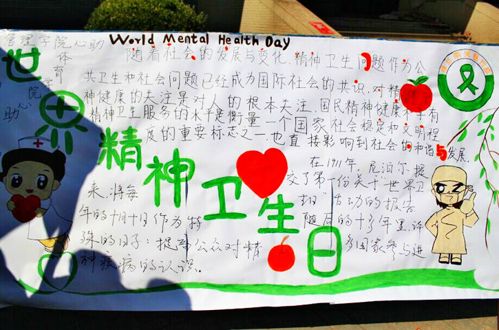 各本次活动由体院学院心理自助中心、环测学院心理自助中心、管理学院心理自助中心共同主办。旨在提高大学生对精神卫生的关注,引导同学们了解精神卫生,以积极向上的生活态度面对学习和生活。