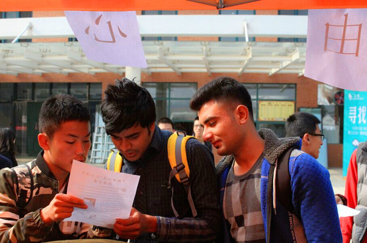 “相由心生”活动是由三个项目组成。一是“微表情。”每组选出一代表用面部表情做出答题者们身后卡片上的与表情有关的词语。二是“水墨画。”每组同学在纸上吹出自己想要的图案。三是“你来比划我来猜”顾名思义,选出的两名同学用手势做出答题者们身后卡片上的词语或短语。三项活动均有评委为同学评判从而分出高下。活动现场,由体育学院心理自助中心干事刘臻坤组织体育学院心理自助中心干事为过往同学讲解活动地址、时间、以及活动内容。短短的十几分钟时间,整个报名点已经被同学们围的水泄不通,大家都积极地报名参加此次活动。