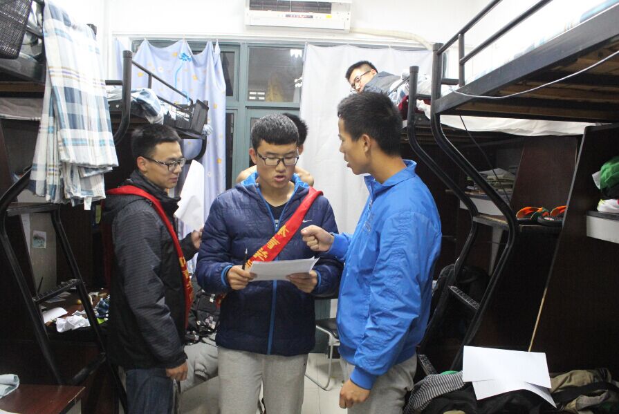 青协成员崔皓走进寝室里,首先向宿舍成员发放宣传海报,海报上表有参赛的具体时间和地点。在同学们看完海报后,他就向同学介绍本次知识竞赛的意义所在,他说:“现在时代快速发展,爱国之情涌上心头,现在的我们不能像几十年前一样投身战场,报效祖国。但是我们现在能通过了解我们的家乡和各民族的风俗人情来爱国”。同学们听后积极踊跃地参加了活动,并配合青协成员完成报名信息。