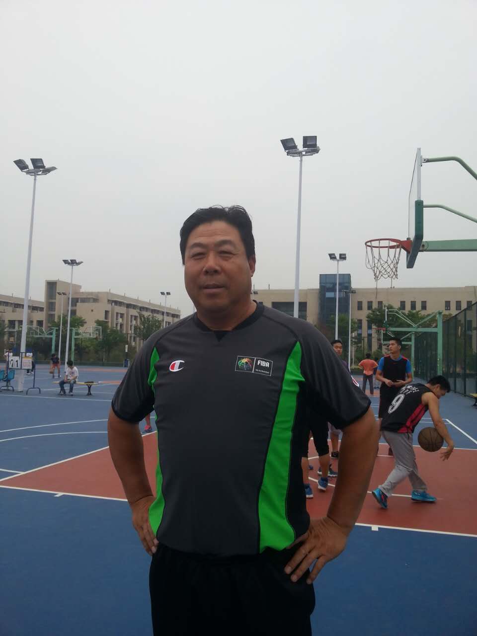 樊六东老师在篮球场