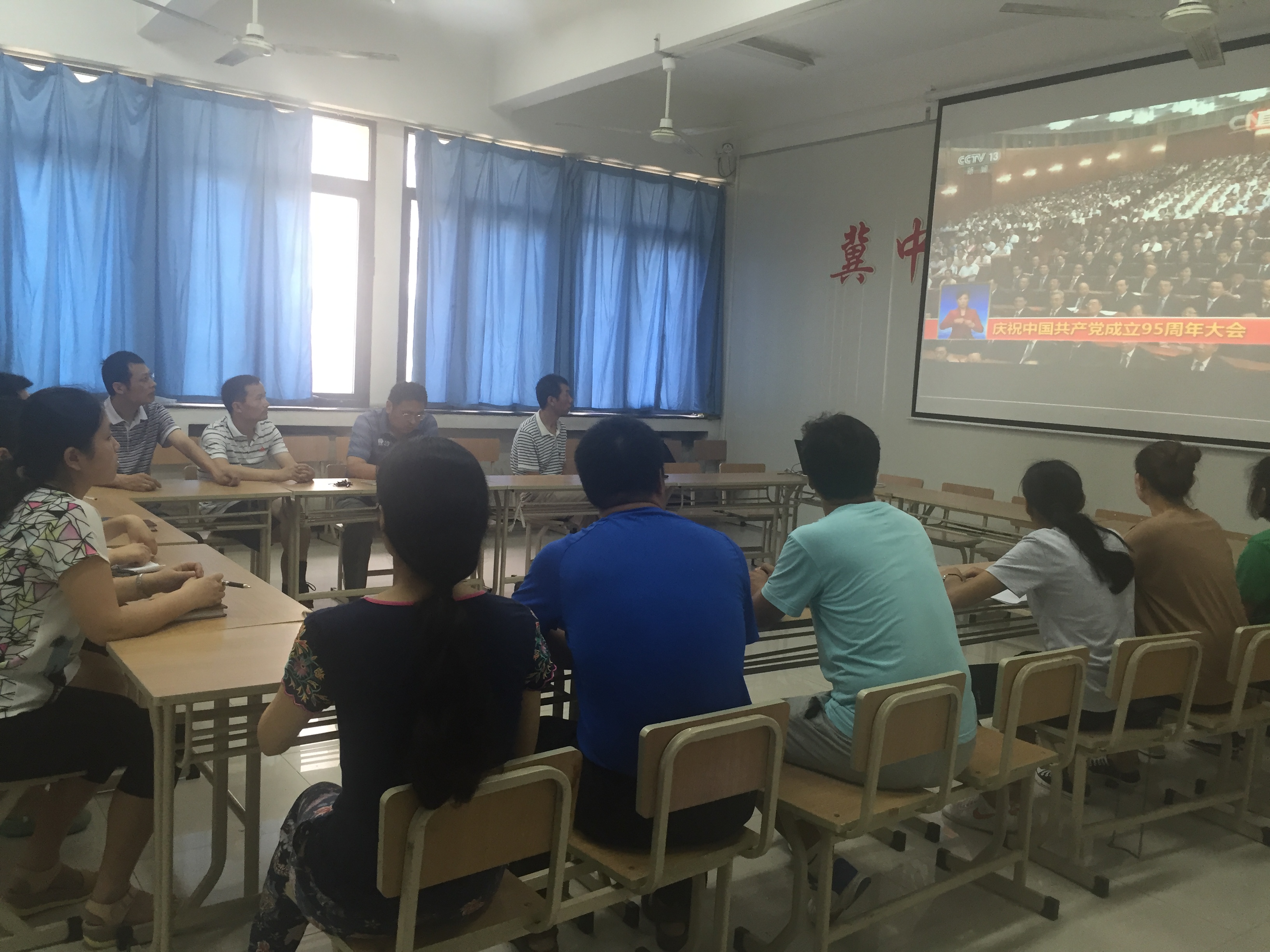 师生党员代表集体观看庆祝中国共产党成立95周年大会