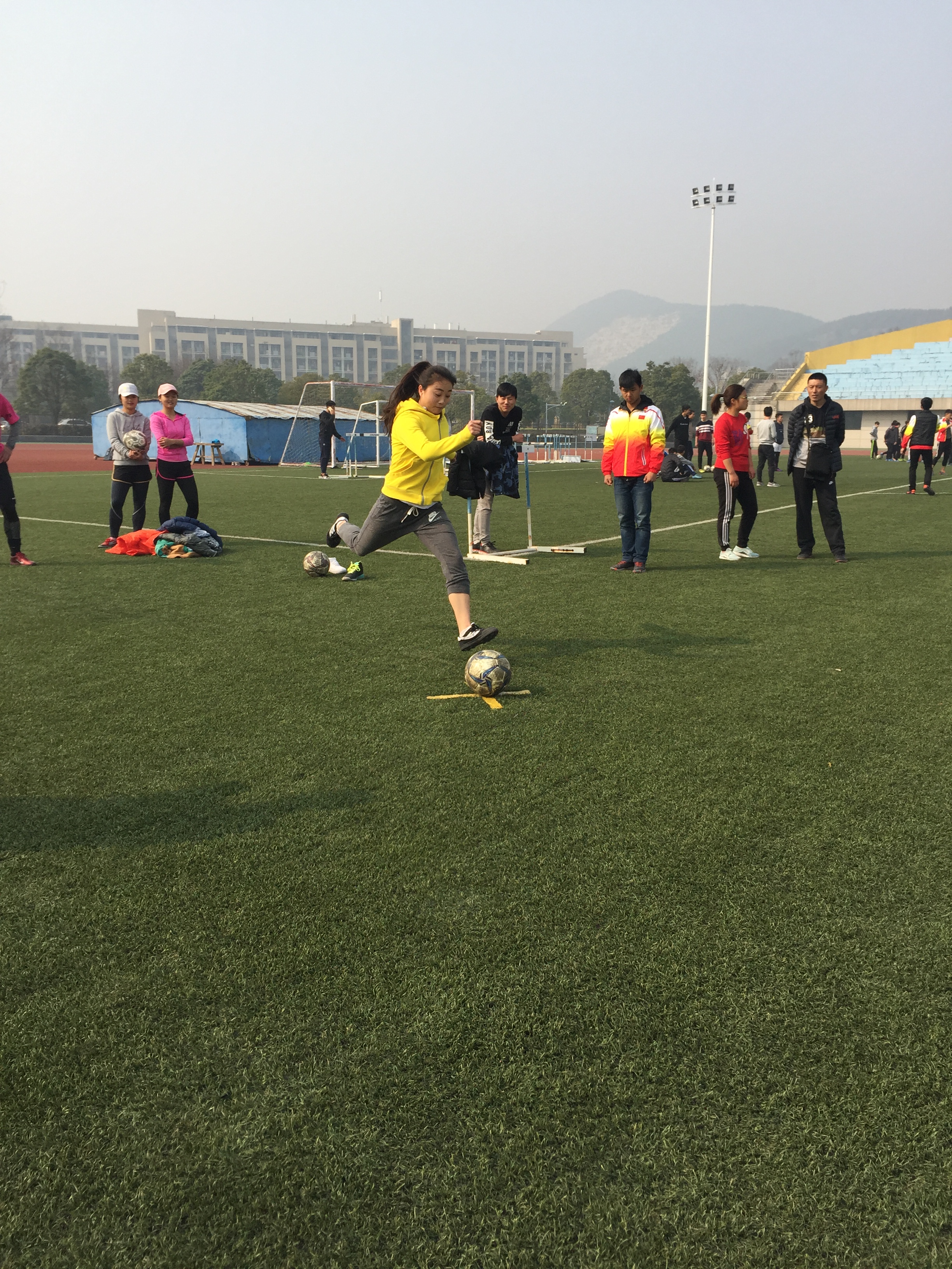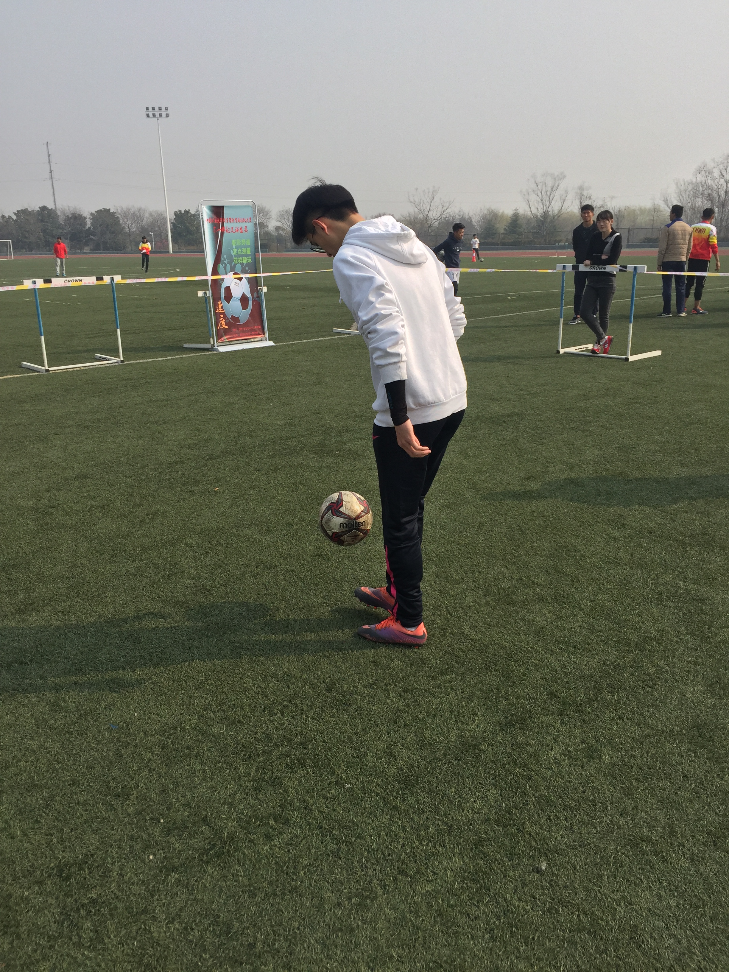 比赛共设置花样颠球、定点测量和蛇形穿越三个项目,对同学们的基本功、心理素质等因素进行全面考核。在花样颠球比赛中,16-2班姜豪虽然脚感不佳,不断掉球,但他仍调整心态,以优秀的成绩完成比赛。在之后进行的定点测量比赛中,同学们愈战愈勇,16-1班的张潮熙同学更是一脚直接命中靶心。而在最后一项的蛇形穿越中,不少基本功扎实的同学,用脚背内侧踢球,迅速地绕过障碍杆,在快中求稳,稳中求胜,大脚射门并取得了优异的成绩。参赛同学在比赛中展示了自我,切磋了球技,明确了不足,鼓足了干劲。社体15-1班张秋悦同学说:“感觉以后练专项,学专业更带劲了!”经过激烈比拼荣登榜首的刘凡磊同学(社体14-1班)则说:“以前总觉得自己水平还不错,今天和学弟比拼了一下,发现很多还没有开始专项学习的学弟水平已经很高了,有很强烈的危机感,以后要好好练习了!”
