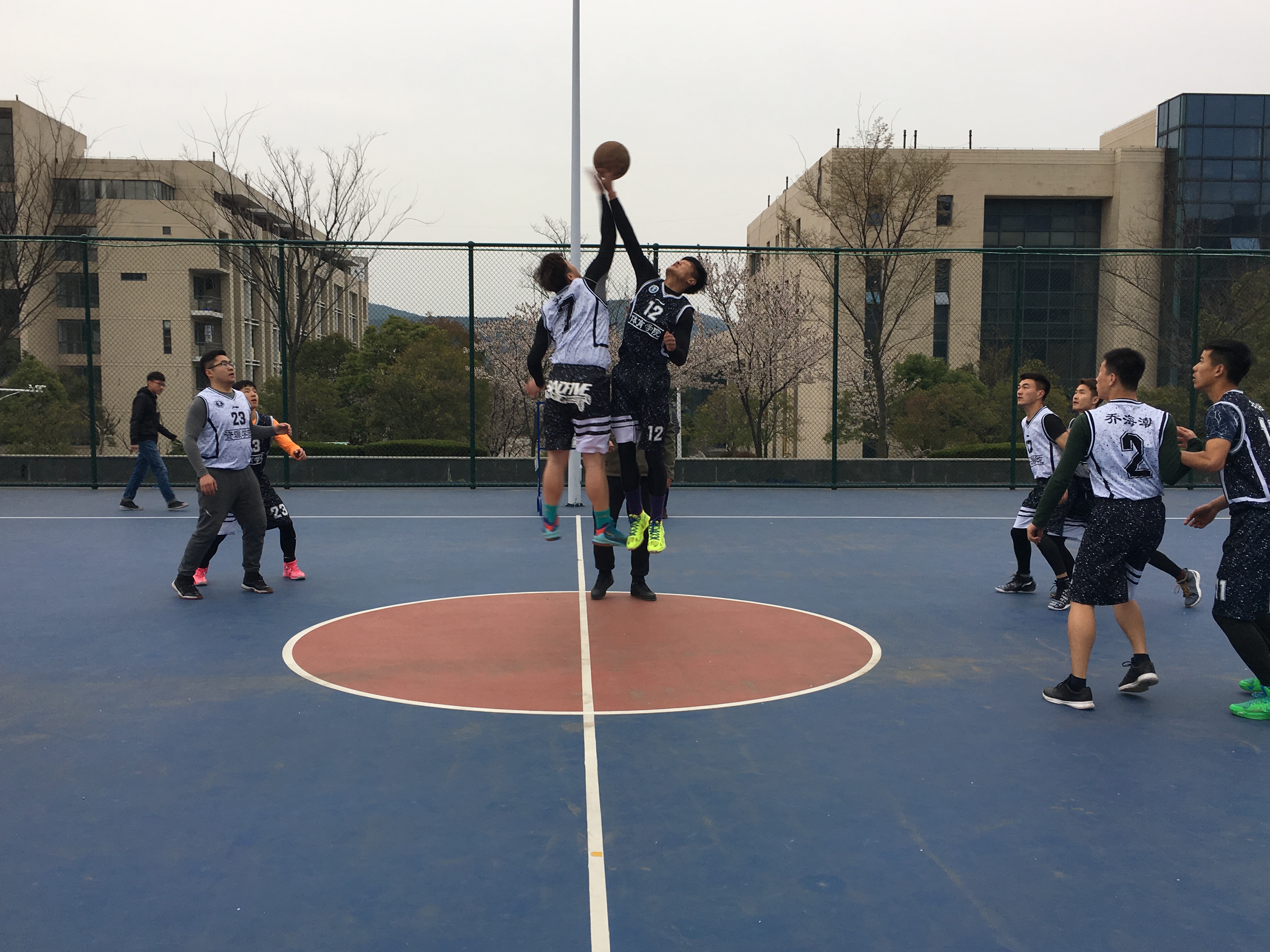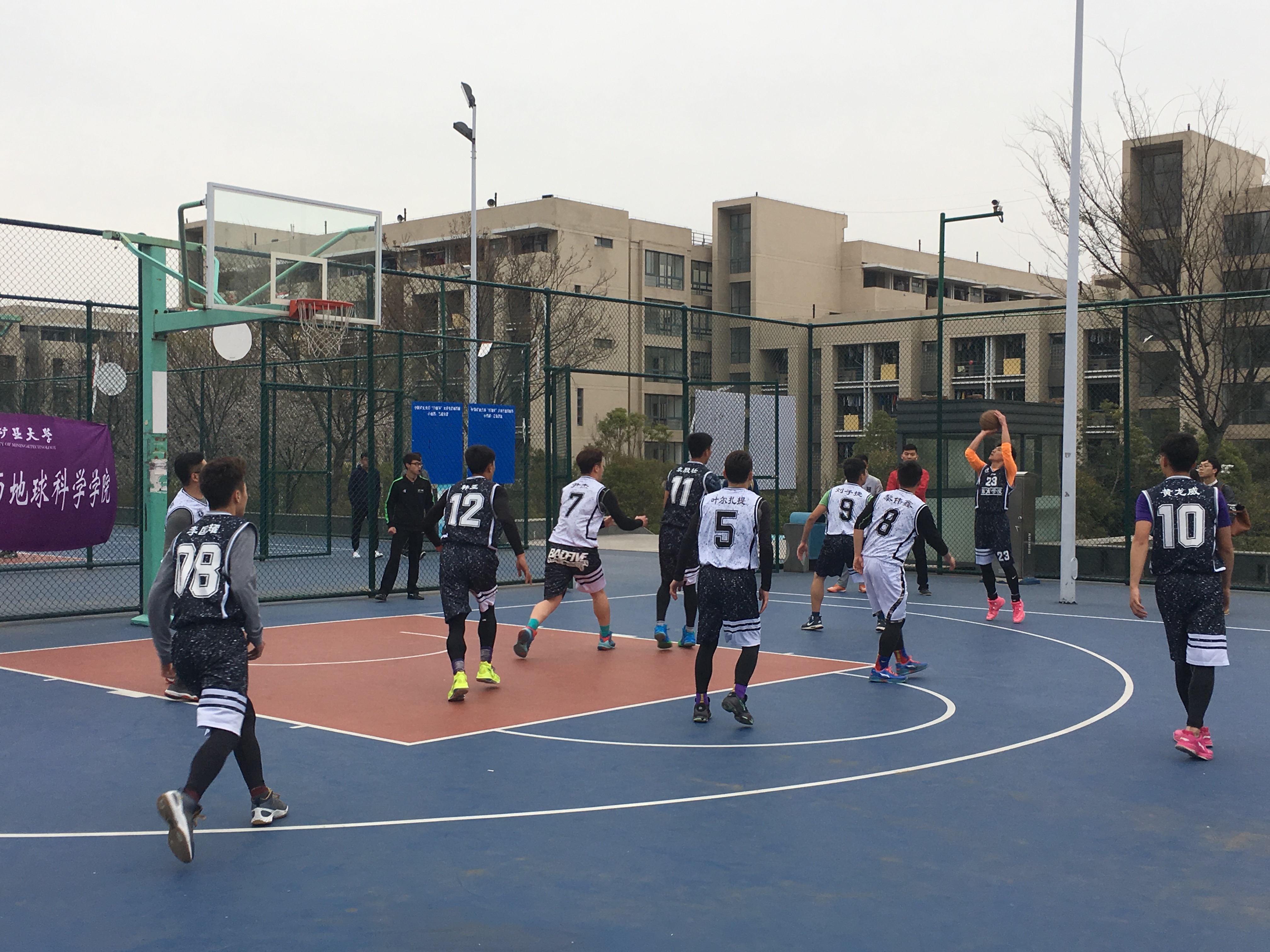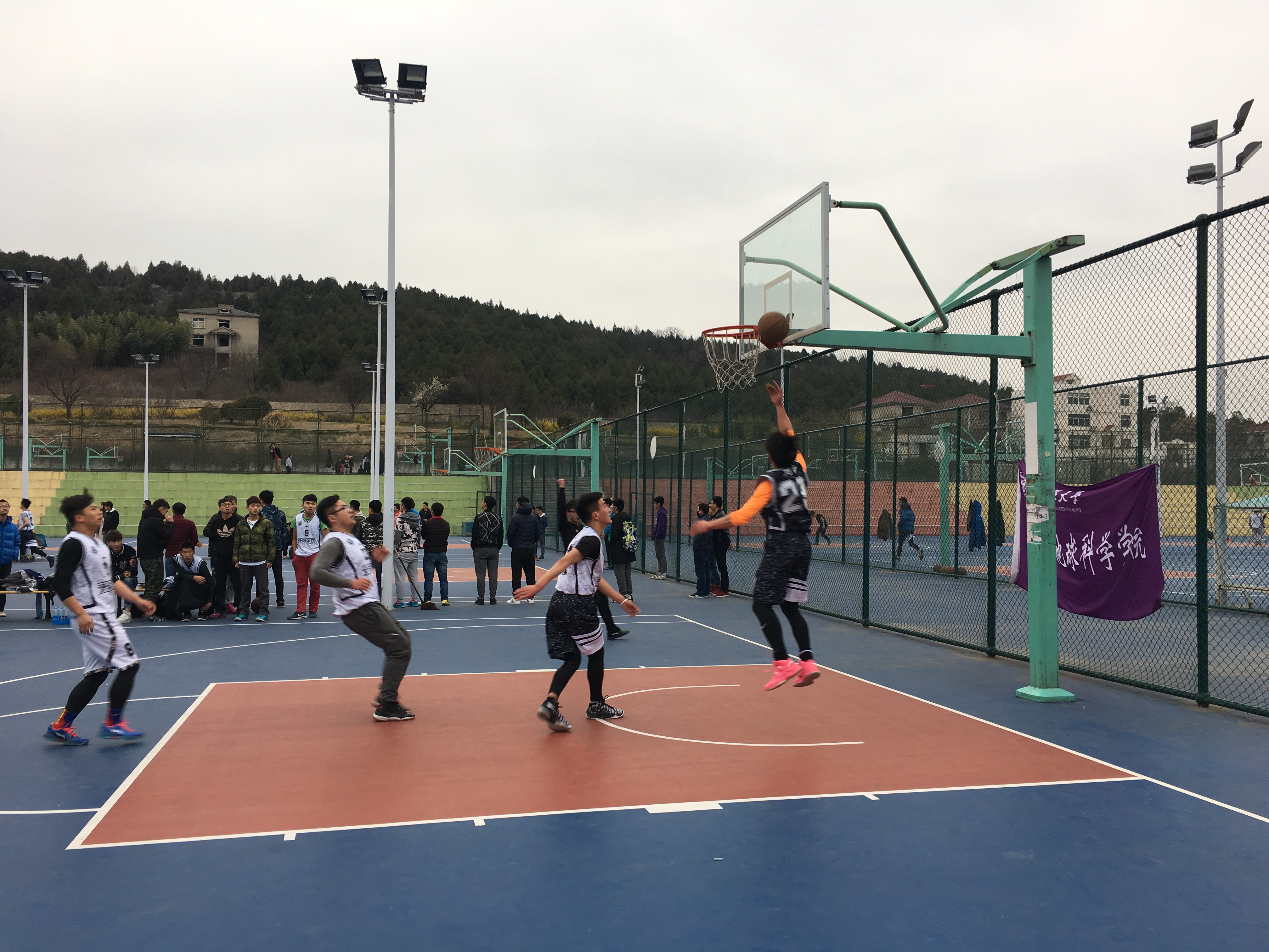 随着终场哨声的响起,全场比赛结束,体育学院男篮最终以54:57的比分取得比赛的胜利。