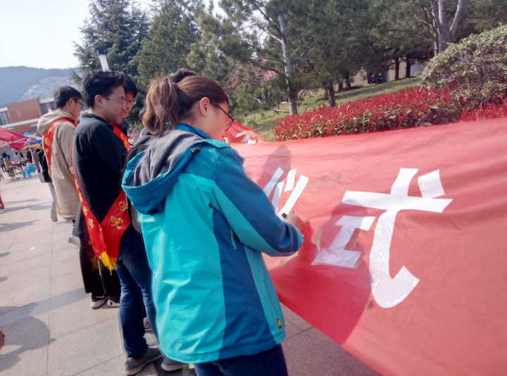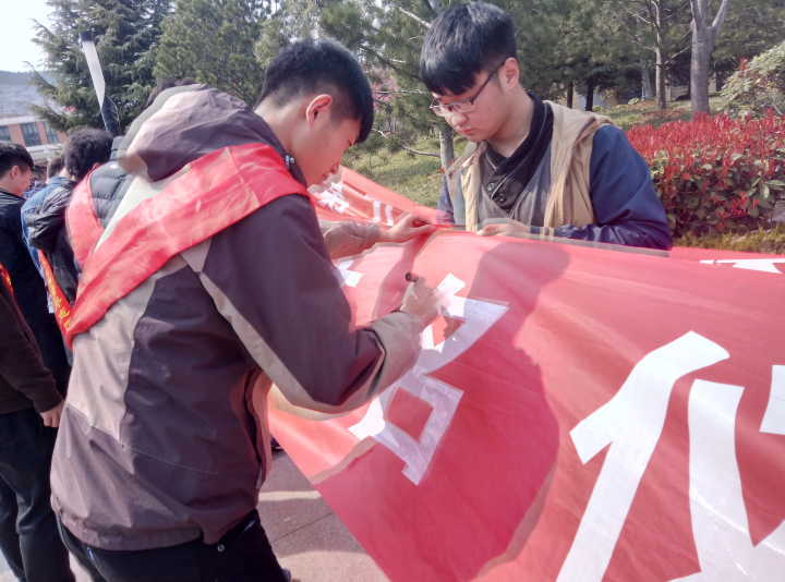 活动现场,主持人介绍了本次活动的内容及意义,嘉宾张婉秋老师作了致辞。简单的开场后,志愿者们进行了热情洋溢的宣誓,并进行诚信考试签名。体育学院的志愿者们积极响应活动,并在清理课桌的环节中大展身手,发挥着体育人不怕苦不怕累的精神,拿起小工具就开始行动。在清理过程中大家一丝不苟,不放过任何一个细节。在清理完课桌后,体育学院的原闯同学主动将老师的讲桌清理干净。活动结束后大家在一楼集合并合影留念。