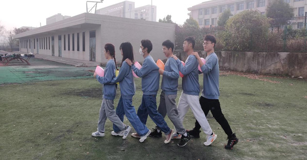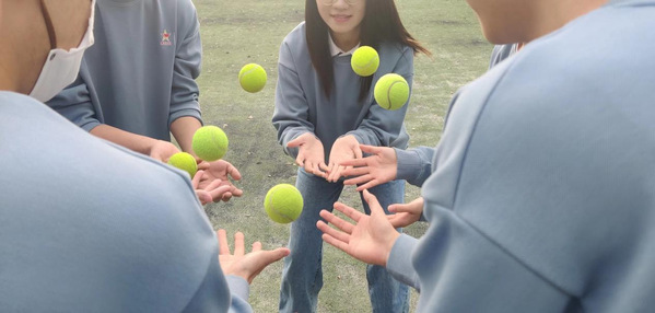 首先,学员们在体育学院心理自助中心部长们的带领下进行热身运动。活动开始,学员们被分成不同小队,每队推举出一名队长,在队长的带领下开展后续活动。随后是小队展示环节,本环节由小队成员合作完成队旗设计和才艺展示两部分,300秒内绘制队旗并设计个性队形,每一队的展示都各具特色。活动中期,通过完成“我们是最棒的团队”、“齐心协力”、“众人一条心”、“纸牌密码”、“气球运输”和“能量运输”等活动,让大家相识相知,迸发出美好的情谊。活动后期,学员们也分享了此次拓展活动的心得,纷纷表示这是一次充实快乐的体验。