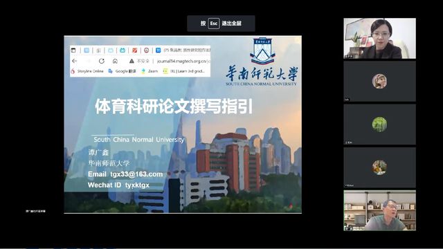 谭博士介绍了《体育学刊》前身、发展史和全国体育科技期刊概况,随后介绍如何选择期刊、审稿流程、投稿注意事项。最后谭博士对我院师生提出的问题都一一做出解答。