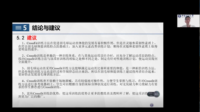 11月28日,体育学院2022年12月拟毕业硕士研究生学位论文答辩。参加本次答辩的学生为1名学术型硕士研究生和5名专业型硕士研究生。上午出席答辩会的是黄美蓉教授、金鹏副教授(东南大学)、张清华副教授。下午出席答辩会的是项立敏教授、黄美蓉教授、金鹏副教授(东南大学)、张清华副教授。在答辩中学生准备充分,答辩老师提出的问题针对性很强,有利于论文的修改完善。学位评定分委会主席项立敏教授在答辩尾声叮嘱答辩学生认真修改学位论文。2022年下半年研究生学位论文答辩工作顺利结束。