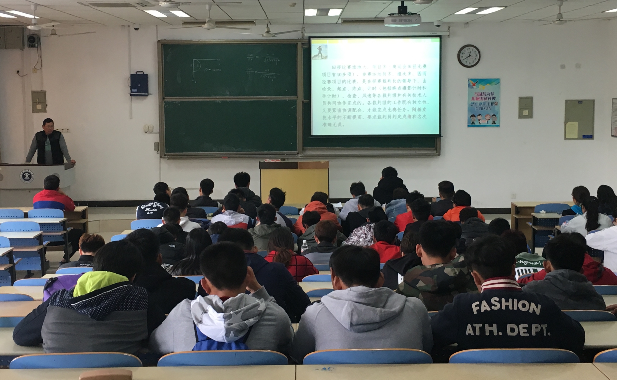 4月10日,体育学院在博一A102组织开展校运会裁判员赛前技术培训。担任校第57届田径运动会裁判员的全体师生参加培训,培训由本届运动会总裁判长体育学院孟献峰教授主讲。