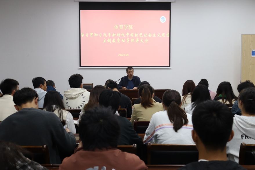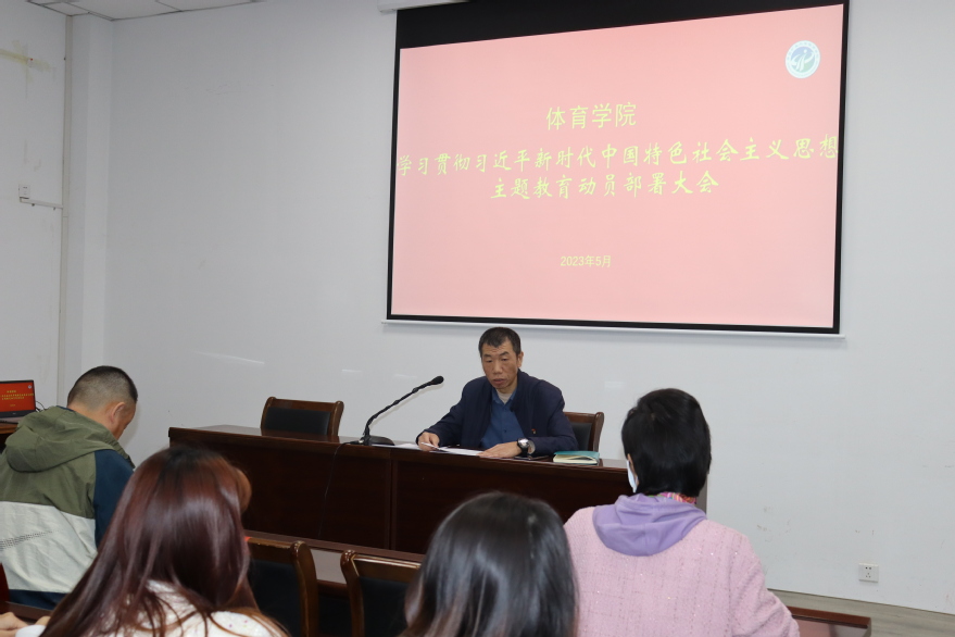 5月11日上午,体育学院在体育馆B107会议室召开学习贯彻习近平新时代中国特色社会主义思想主题教育动员部署会,认真贯彻落实习近平总书记在主题教育工作会议上的重要讲话精神,对学院开展主题教育进行全面动员部署。院党政班子成员、全体师生党员参加了会议。