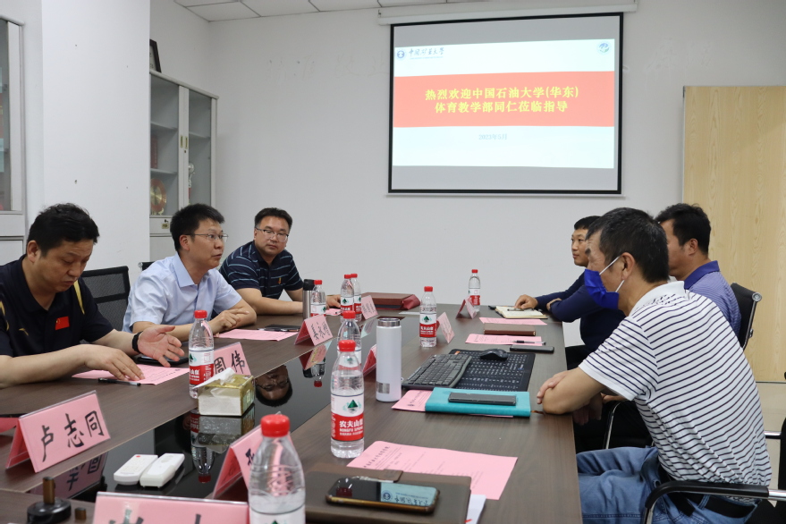 姜永增对学院的热情接待表示衷心感谢,简要介绍了中国石油大学(华东)体育教学部的基本情况和本次调研内容。参会人员就师资队伍建设、公共体育教学、高水平运动队建设、大学生体质健康测试、群体竞赛等内容开展了深入交流。