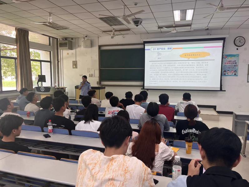 高洁队长从人身、财产安全问题出发,结合实际案例生动具体地为同学们讲解了日常生活中可能存在的安全隐患、如何有效预防损害事故以及学法、懂法的重要性等方面的内容。在讲到具体案例时,高洁队长利用“学习通”和现场同学进行互动,充分调动了现场同学的参与热情,同时也让同学们更加深刻地掌握了相关知识。