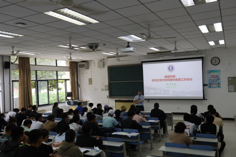 为营造诚实守信、严谨规范的学术氛围,2023年5月29日中午,我院组织召开了硕士研究生学术学风警示教育工作会议。会议由体育学院副院长王军利作主题宣讲,体育学院研究生秘书孙云丽和全体硕士研究生参会。