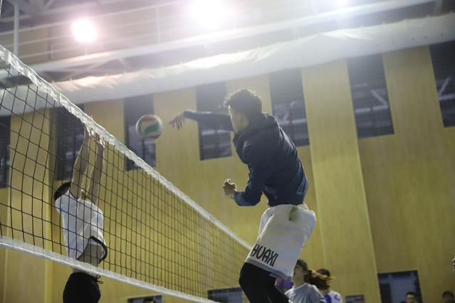 当晚,现场观众坐满排球场,参加决赛的两支队伍实力相当,比赛精彩绝伦,体育学院、土木学院的加油声响彻整个体育馆。