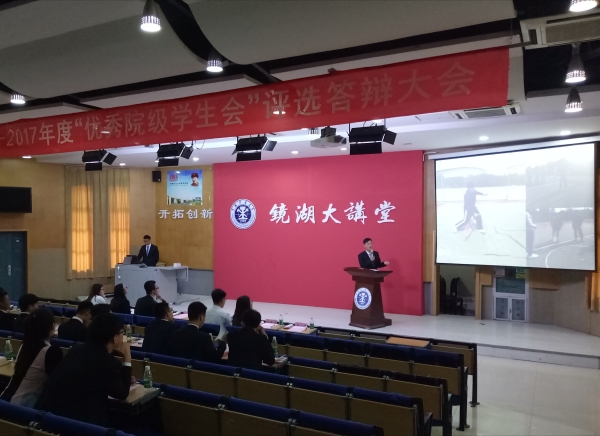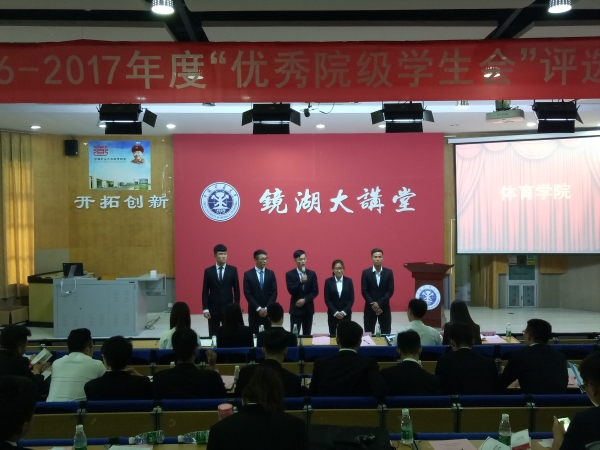 6月4日下午,在镜湖大讲堂举行了2016-2017年度“优秀院级学生会评选答辩大会,体育学院等20个学院参与此次答辩。