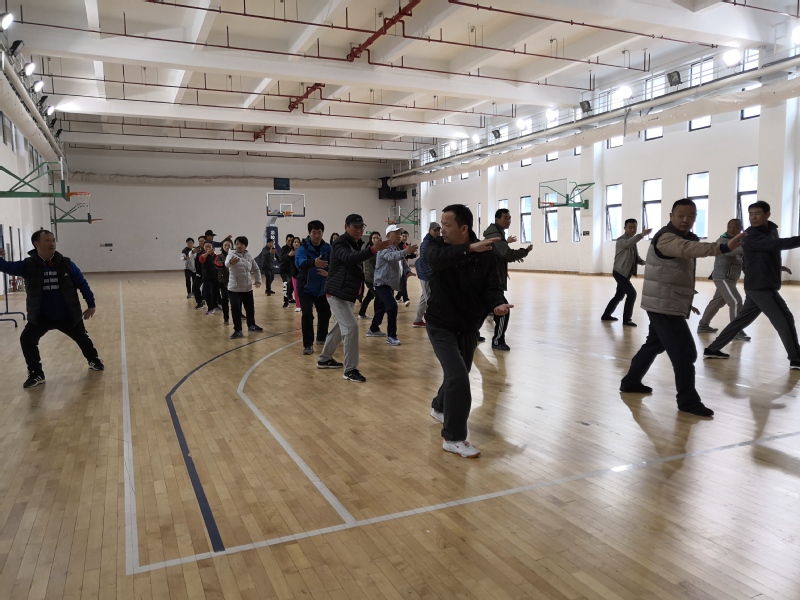 最后,全体教师对太极拳教学动作进行了复习和演练。