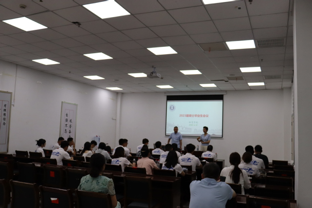 2023年6月15日上午,体育学院在体育馆B107会议室举行2023届硕士毕业生会议。会议由王军利副院长主持,体育学院院长翟丰、体育学院党委副书记李琳、研究生秘书孙云丽、兼职辅导员廖鸣宇及全体硕士毕业生参会。