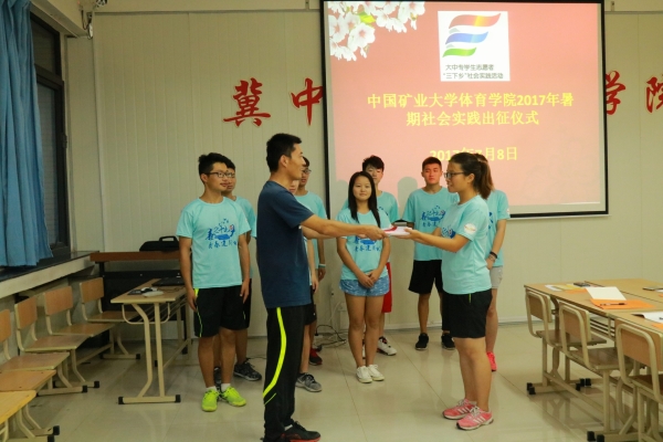仪式现场,马英虎老师首先对本次社会实践的活动内容以及具体的日程安排进行了布置,并对所有团队成员提出要求。他指出社会实践旨在引导大学生们走出校园,走近社会生活,通过深入生活来检验自我、提升自我。他希望所有成员能够珍惜本次实践机会,并充分发扬艰苦朴素的精神,牢牢把握“助力在行动,筑梦到基层”的实践主题,用心观察、用心体会,真正实现社会实践的目的。随后,此次实践团的团长,来自社体15-1班张秋悦,带领全体成员宣誓并签署了《实践活动承诺书》。最后,马英虎老师向实践团团长张秋悦授旗并宣布体育学院2017年“助力在行动,筑梦到基层”暑期社会实践正式启动。