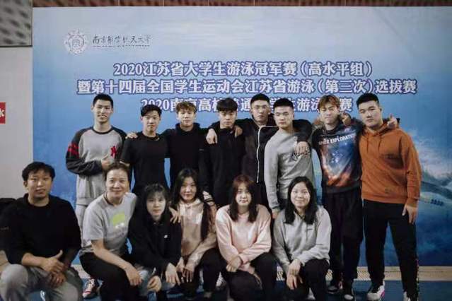 在刚刚进行的2020江苏省大学生游泳冠军赛(高水平组)暨第十四居全国学生运动会江苏省游游泳(第三次)选拔赛2020南京高校普通大学生游泳比赛中,校游泳队以8项单项冠军,17项单项亚军,并在男子4x200米自由泳接力,女子4x100米混合泳接力中获得冠军,最终取得团体第二名的好成绩。