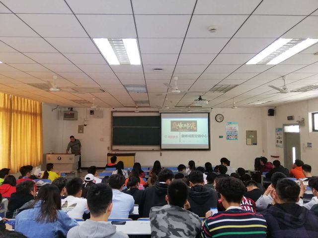 本次宣讲会现场,上海巅峰减重合伙人耿文豪先生首先为同学们分享了公司从起步到成熟的宣传视频。随后,耿先生将个人工作经历、公司背景文化、招聘工作岗位及大概薪资水平等情况作为主要内容,向同学们作了宣传、讲解和推介。他坦言,工作中营销团队会面临重压与实际薪资的巨大差距,但“所有的努力数字不会欺骗你,只要你敢冒险一定会收获意想不到的成绩”。作为巅峰减重创办人之一,冯磊先生则与同学们分享了他的创业心得,同时鼓励大家要敢于挑战,激起了同学们的兴趣。在宣讲会的互动环节,耿先生、冯先生对同学们提出的问题热情解答,并多次强调实习的锻炼要求以及学以致用的重要性,宣讲会气氛热烈,掌声不断。