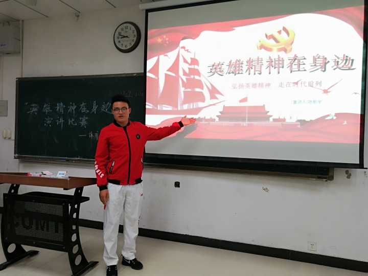 4月27日晚,由体育学院团委主办的“英雄精神在身边”主题演讲比赛在博4B102举行。体育学院兼职辅导员刘昌昊、李文其以及各部门同学参加了本次演讲比赛。