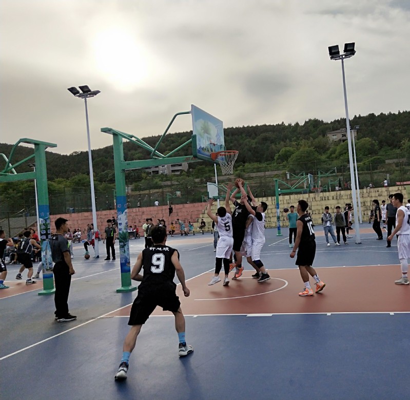 5月6日下午,2019“行健杯”篮球赛在桃苑篮球场开赛,体育学院险胜信控学院。